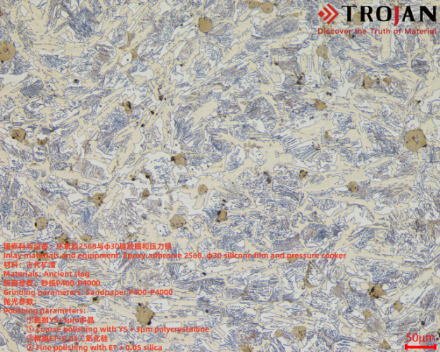 Ecco un apprezzamento dei parametri di preparazione del campione e degli effetti microscopici della fase d'oro dei campioni di scorie archeologiche: