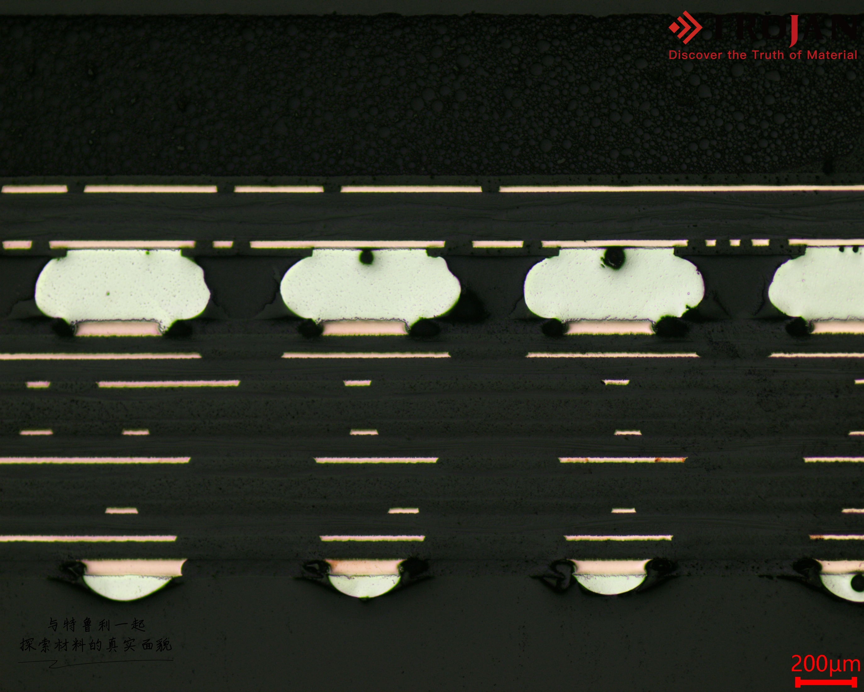 Di seguito sono riportati i parametri di preparazione del campione per le sfere di saldatura dei chip e una valutazione degli effetti microscopici metallografici:
